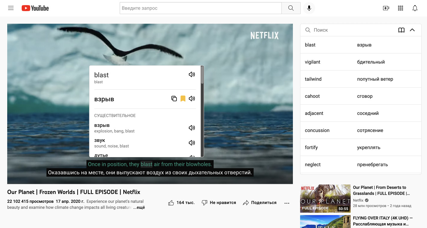 Improve your listening skills and vocabulary by simply watching videos and series with dual captions